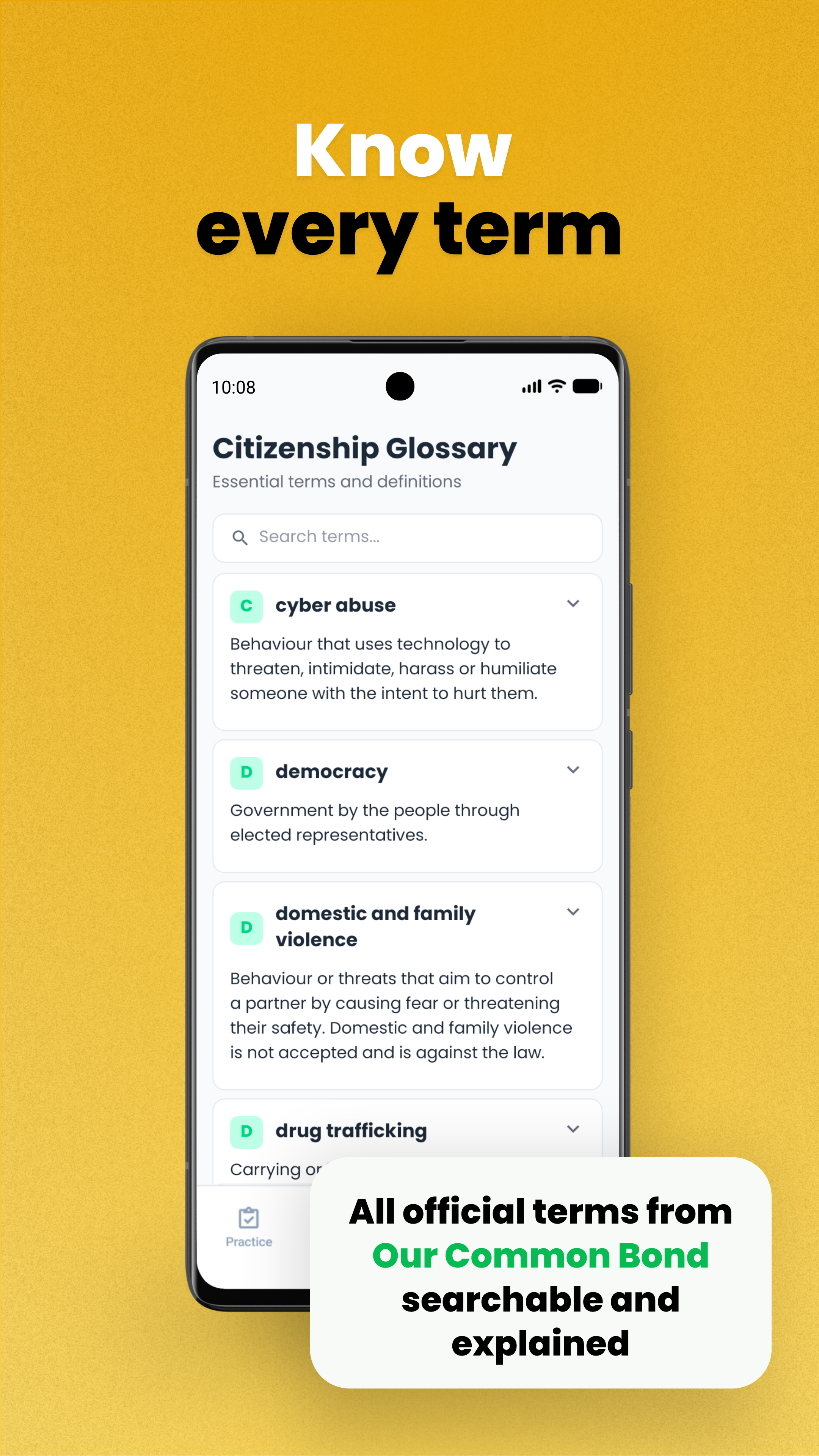 Our Common Bond is the only official preparation resource for the Australian Citizenship Test. Most apps don't include it. This one does — every chapter, every word.